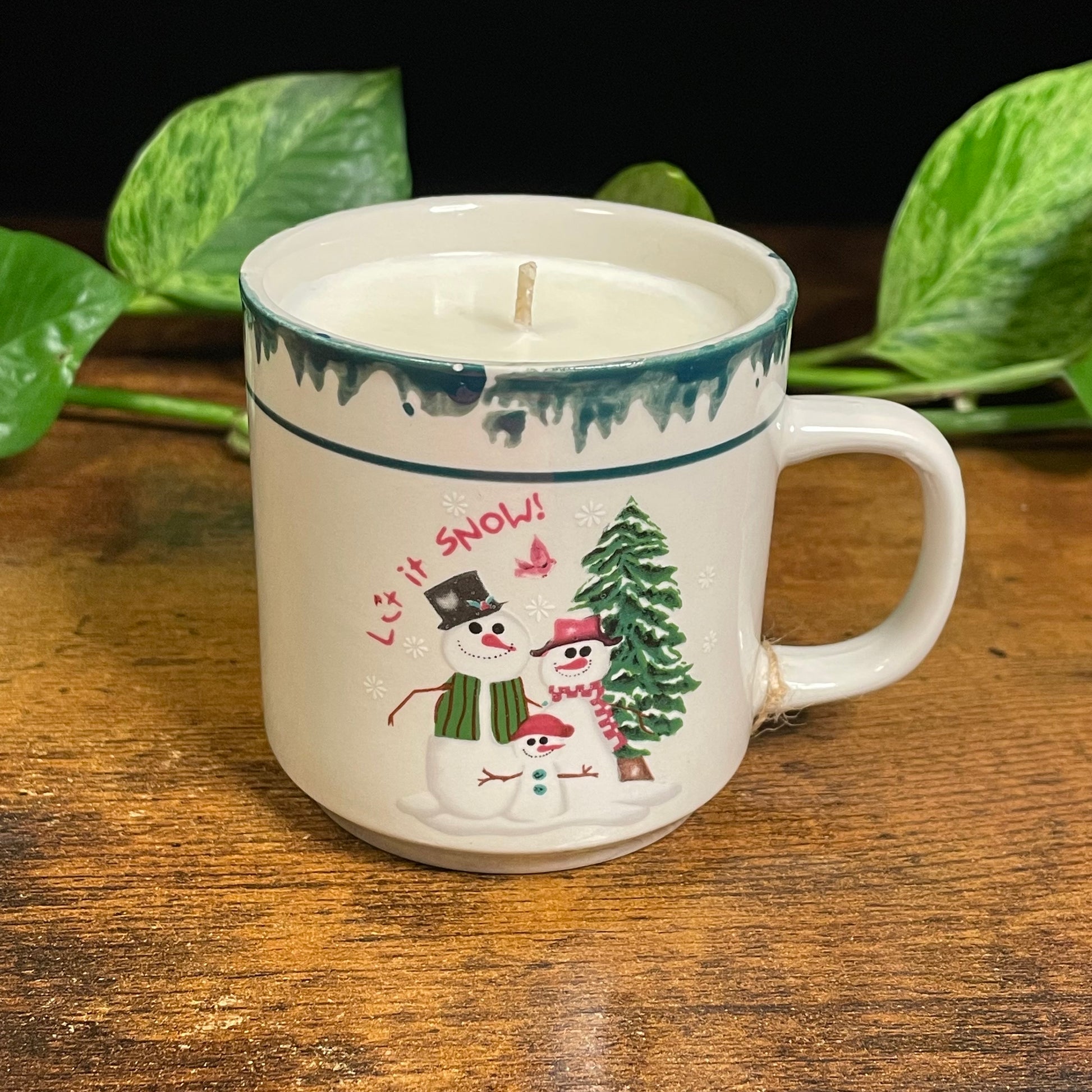 This 6.5 oz. candle features our Balsam fragrance, set inside an Atico Snowman "Let It Snow!" cup. No saucers included.