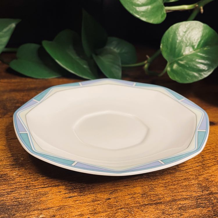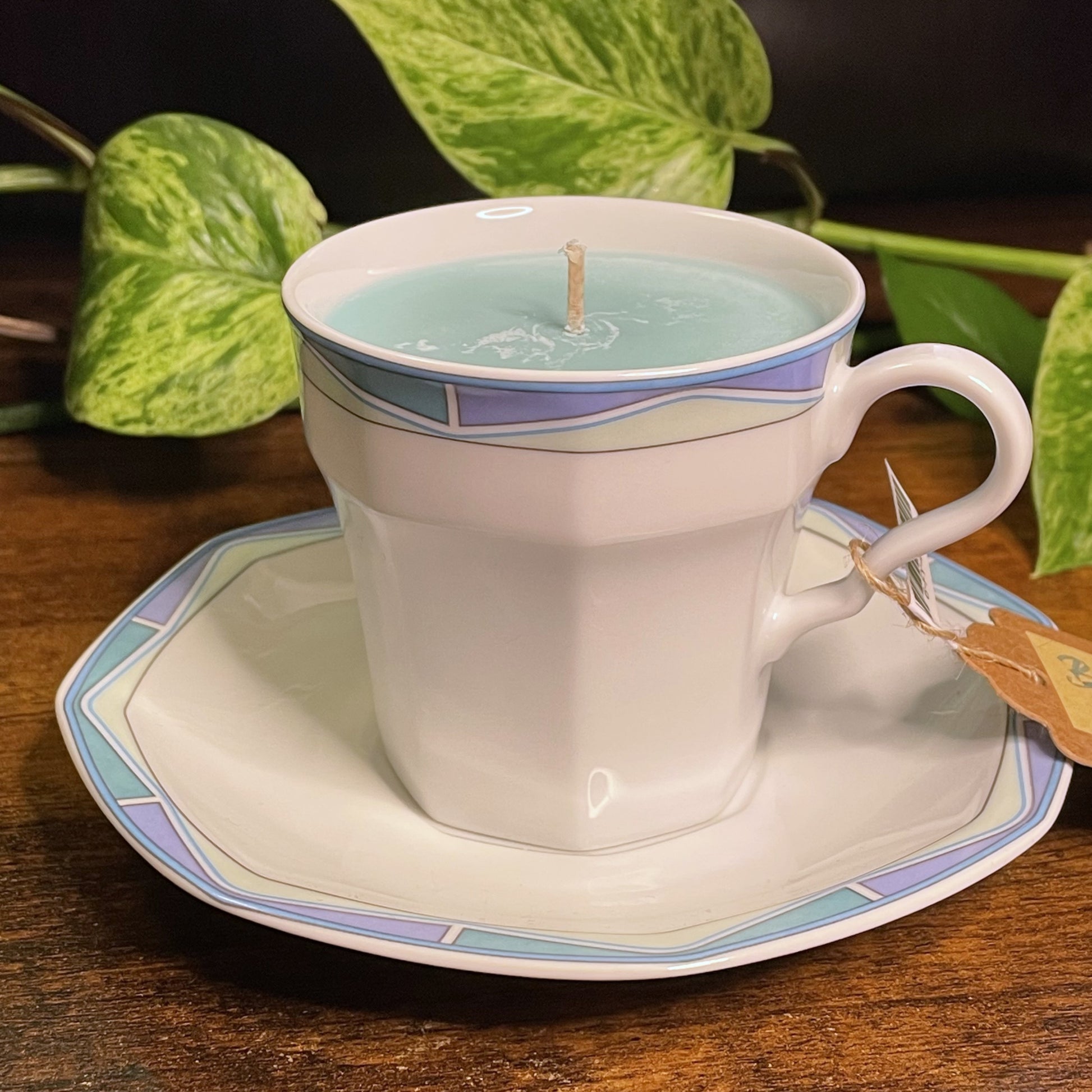 This 6 oz. candle is available in two fragrances, including High Tide and Gingham, set inside Christopher Stuart Acclaim Flat teacups. Matching saucers included.