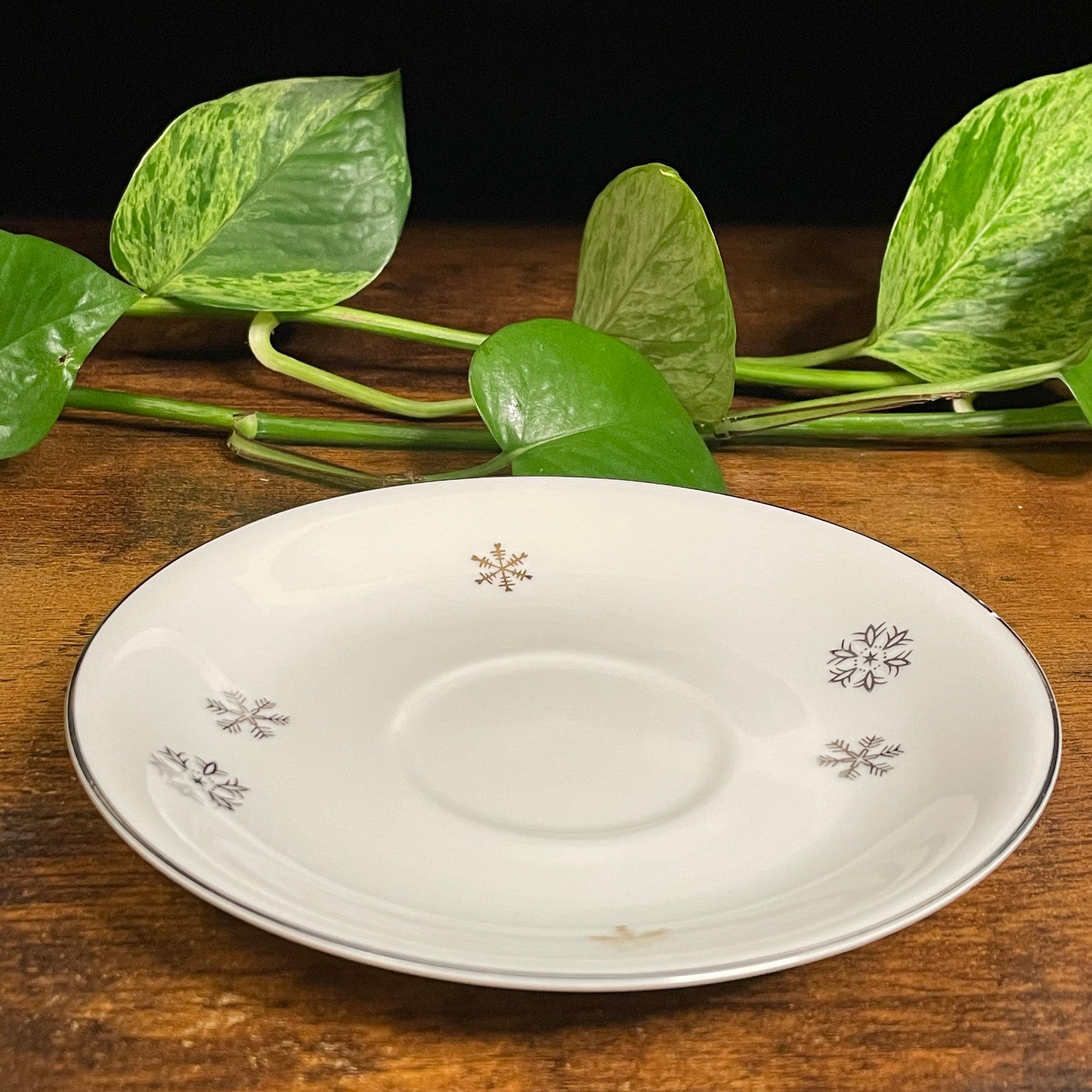 This 4.5 oz. candle features four holiday fragrances, including Blue Spruce, Frosted Juniper, Mistletoe, and Winter's Night, set inside a Empress China Dawn Snowflakes Teacup. Includes matching saucer.