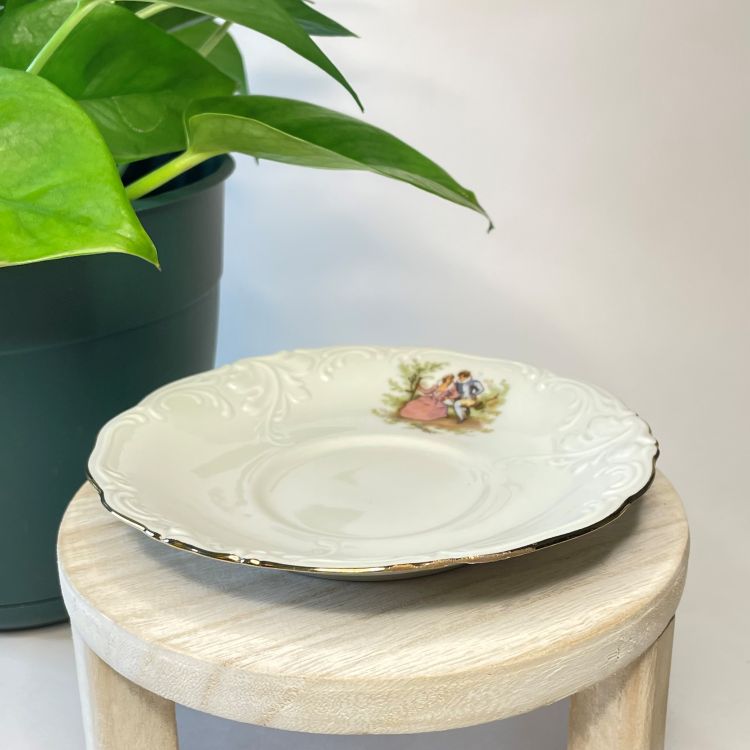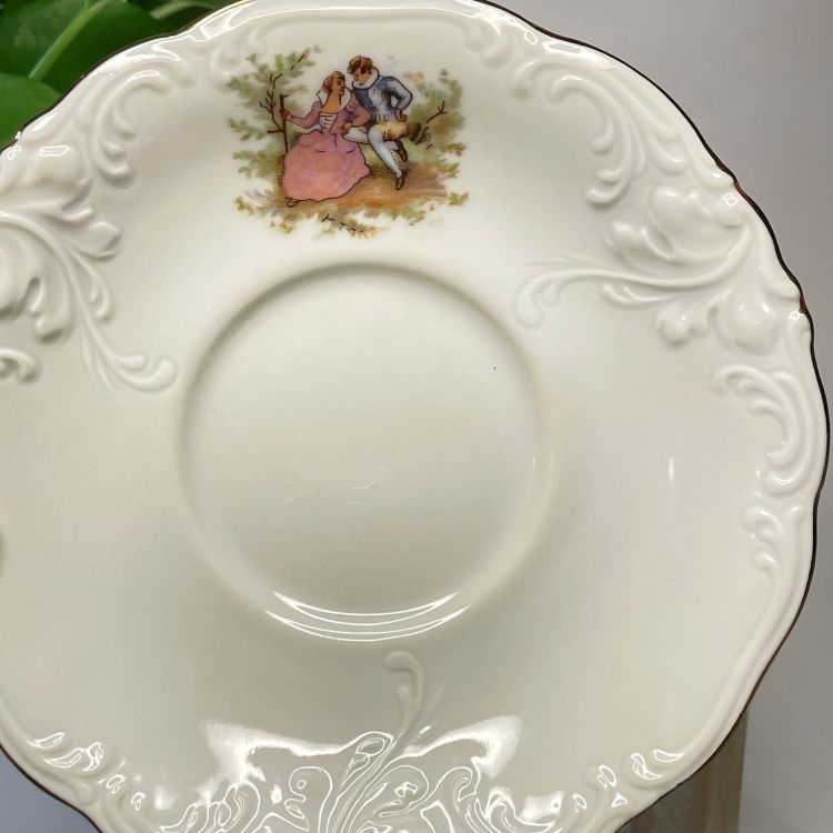 Footed Courting Couple Teacup with Gold Accents Custom Candle | 4 oz.