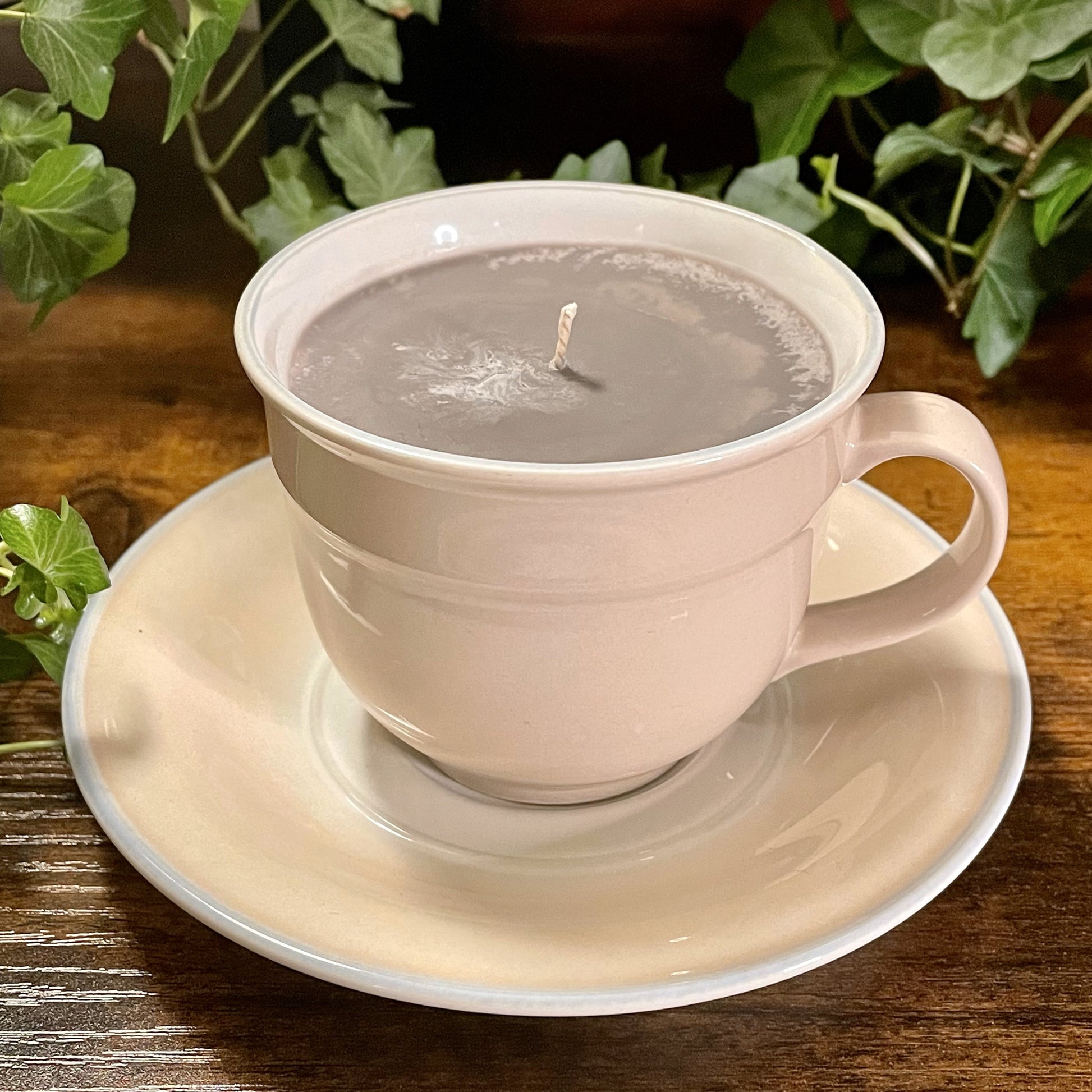 This 7 oz. candle features our Hazelnut Coffee fragrance, set in a Home Beautiful Sea Coral coffee cup. Matching saucer included.