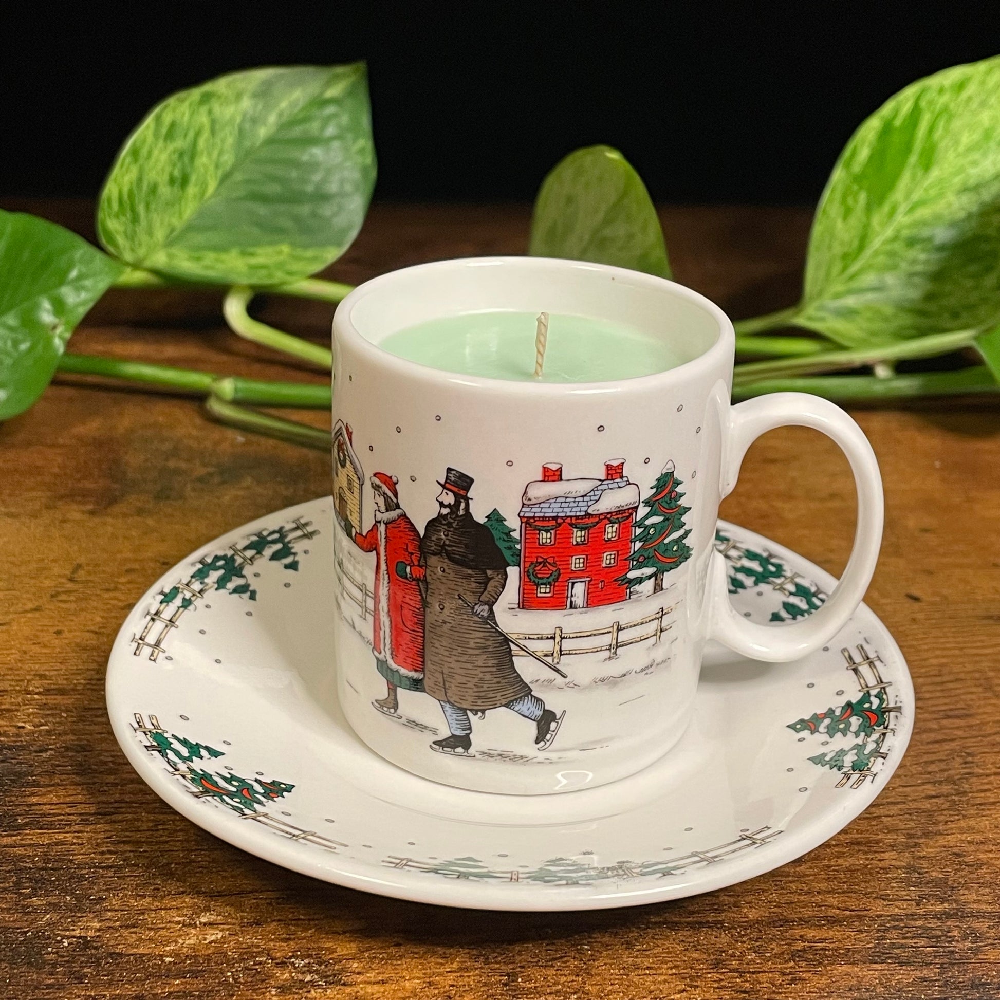 This 3 oz. candle features our Balsam & Cedar fragrance, set inside a Studio Nova Christmas Skating Espresso Cup. Includes matching saucer.